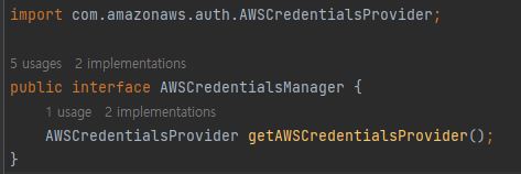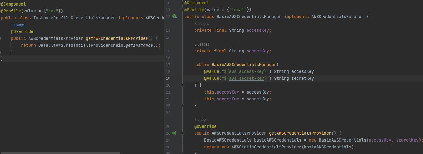 먼저 AWSCredentialsProvider를 한 단계 추상화합니다. 그런 다음 구현 클래스에서 환경별로 분기 처리하려고 합니다.