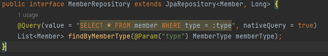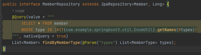 Spring Data JPA의 @Query 어노테이션에서 SpEL을 지원합니다. 그래서 위 사진처럼 SpEL을 이용해서 처리할 수 있습니다.